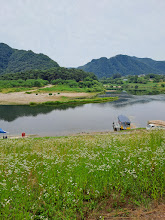 청령포 . 바닥이 거의 들어난 작은 개천같은 강물을 통통배로 건넙니다.